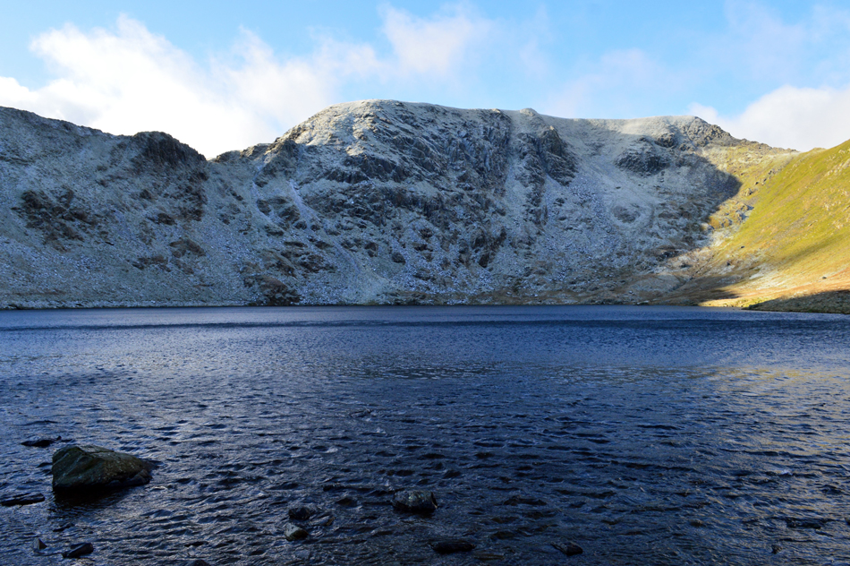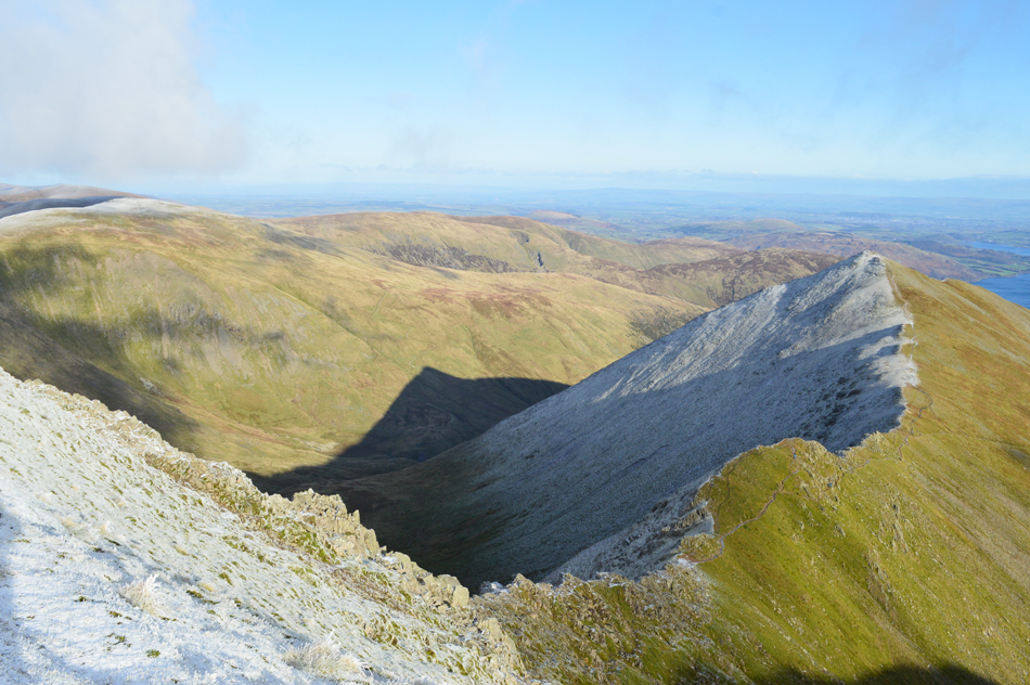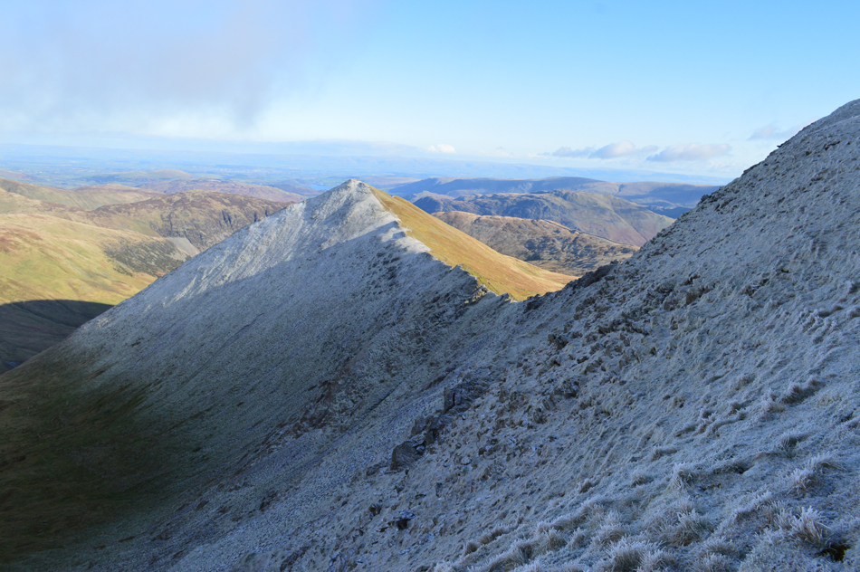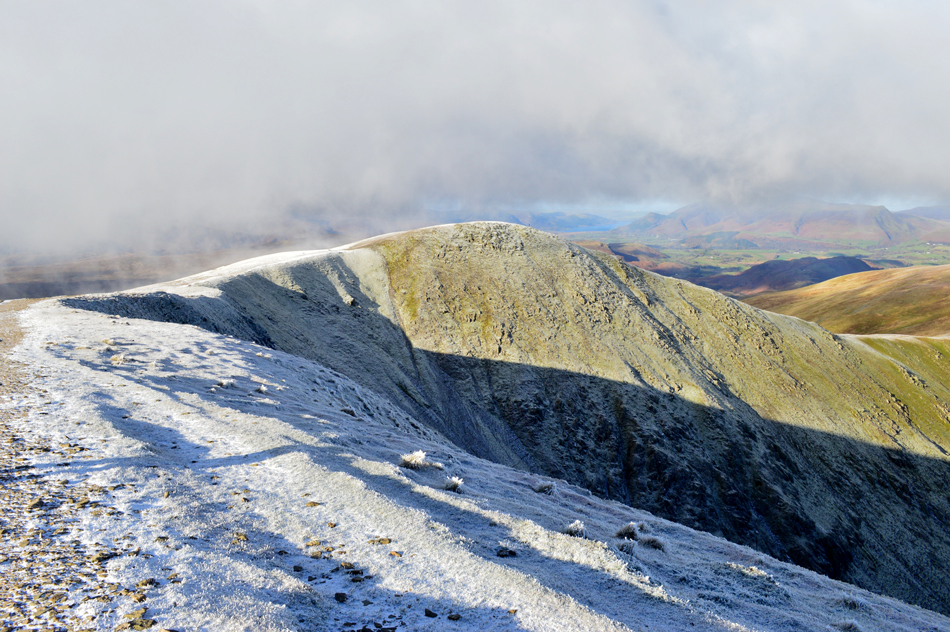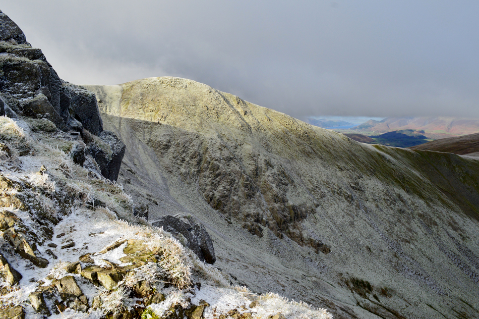 Dramatic views over Brown Cove towards a frosty looking Helvellyn Lower Man. |