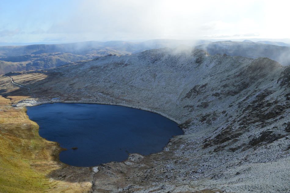 Here's Red Tarn again this time as cloud starts to descend over Striding Edge from Helvellyn summit. |