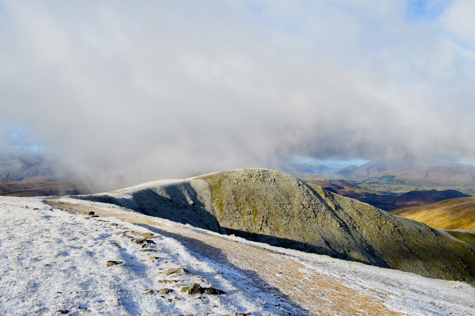 It was noted that today only the Helvellyn group had caught the dusting of snow with the exception of Skiddaw's summit which right now is about to be covered in cloud. |