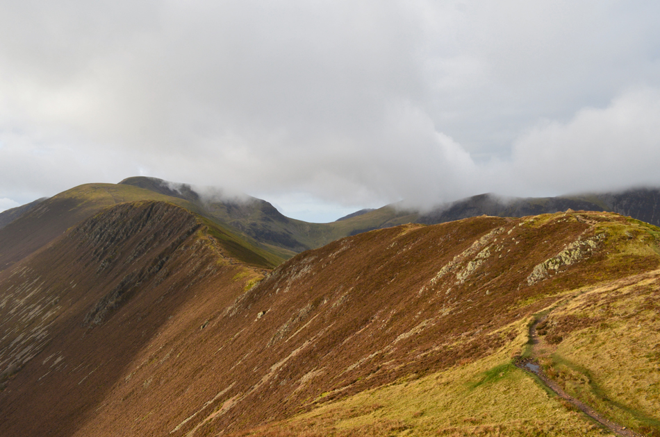 From the col inter-link Sail we would take in the easy ascent over Sail summit before continuing over the classic Causey Pike ridge where we could take in views of Skiddaw, and its cloud topped summit. Sometimes its the last minute walks that always turn out to be the best and today was certainly that.