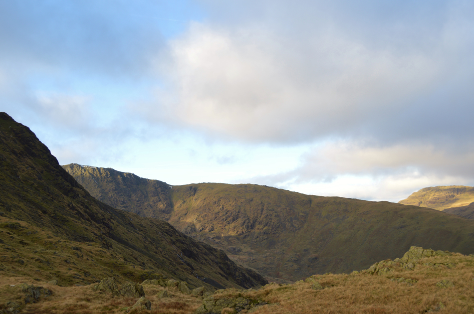 The view from my perch overlooking the Greenburn Valley with Swirl How, Great Carrs and Wet Side Edge. |