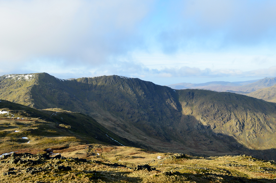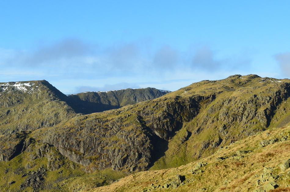 Great Carrs, Wet Side Edge and Little Stand seen over the Greenburn Valley from Birk Fell Hause. |