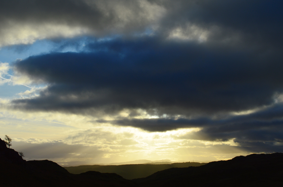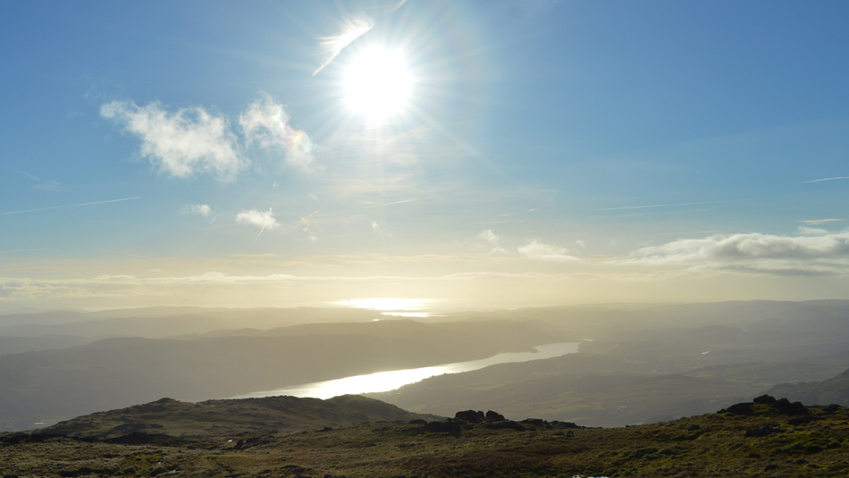That's the Hevellyn group on the left who's summits are just below cloud while further right the Fairfield group escapes the cloud with Great Rigg and Fairfield enjoying a glimpse of sun. |