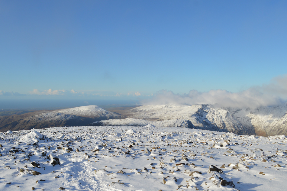 The view towards Great Gable and Styhead from Scafell Pike summit. |