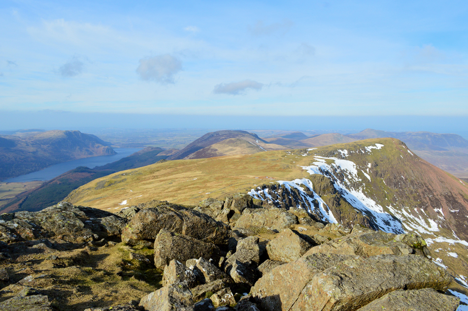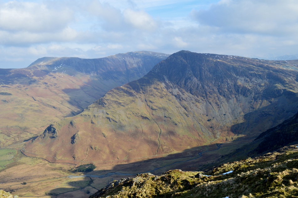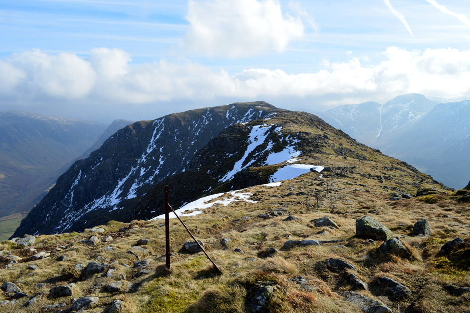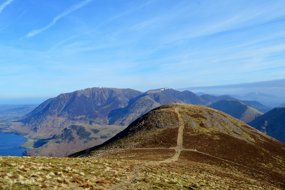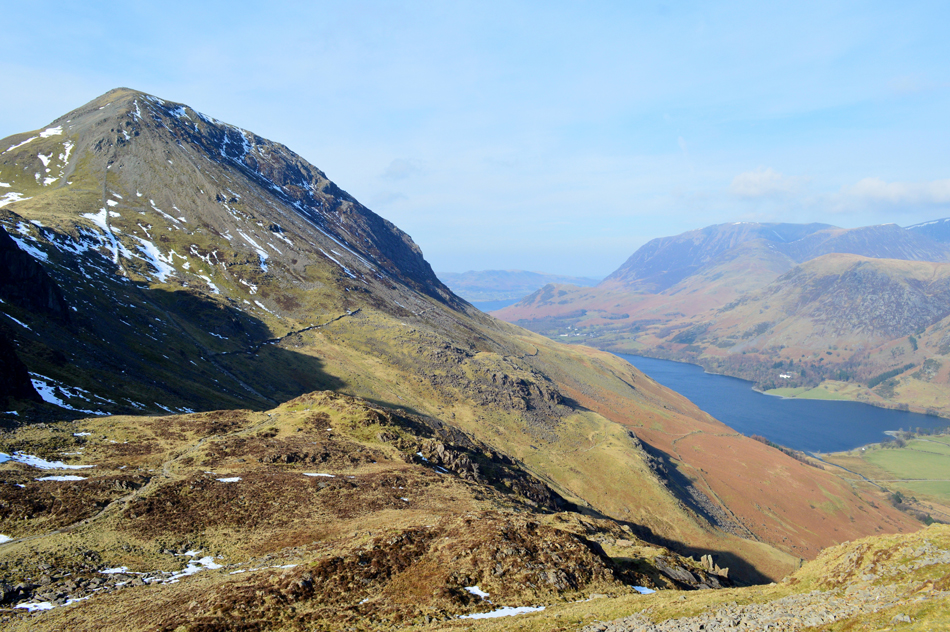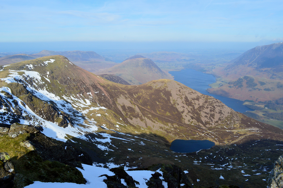 From here it's easy to see what little snow is left on the High Stile Ridge, however this isn't the case further west across the Ennerdale Valley as Pillar comes into view. |
