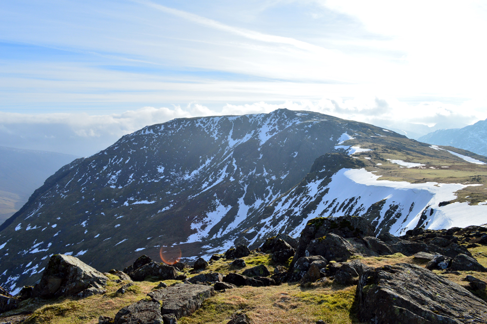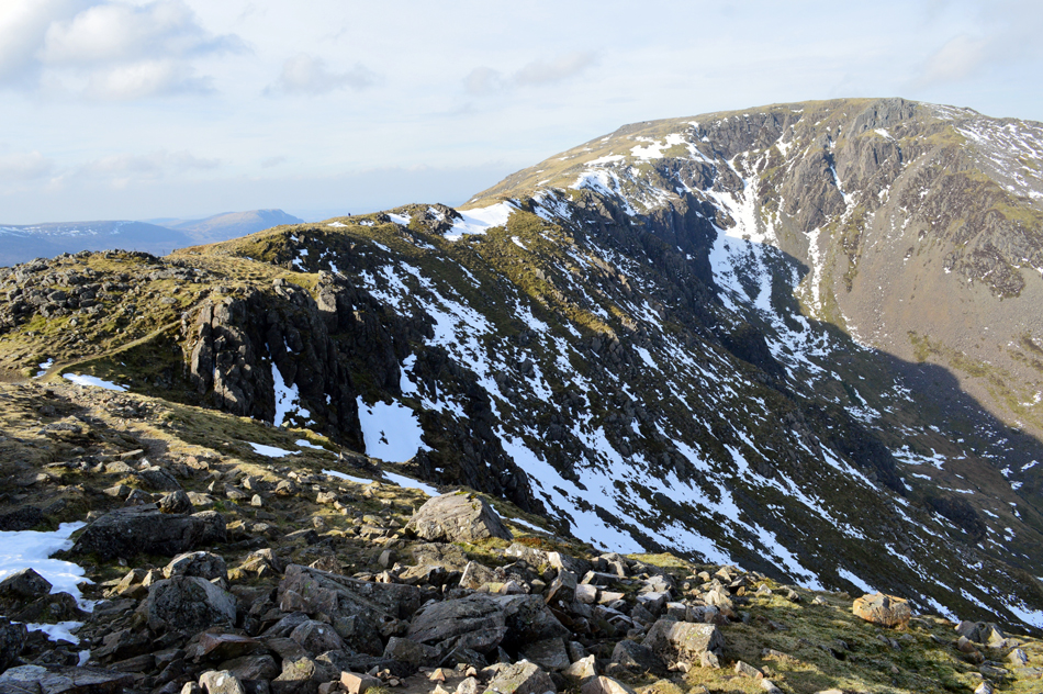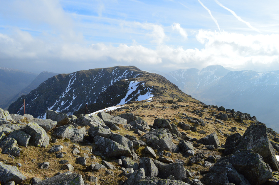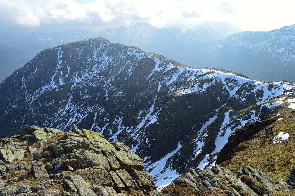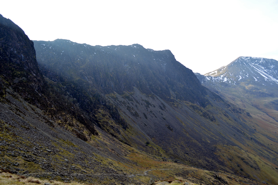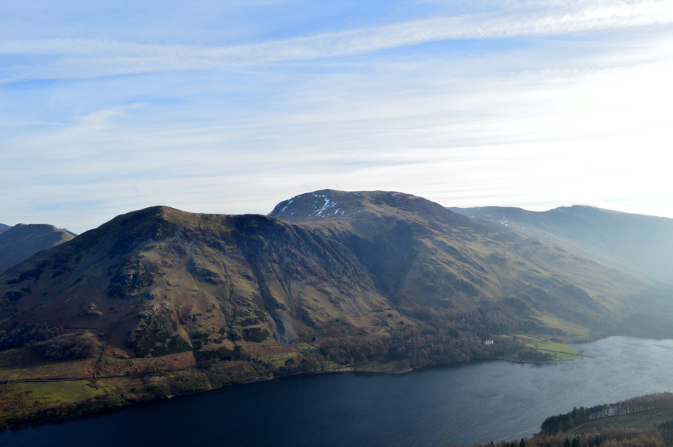 From here it's easy to see what little snow is left on the High Stile Ridge, however this isn't the case further west across the Ennerdale Valley as Pillar comes into view. |