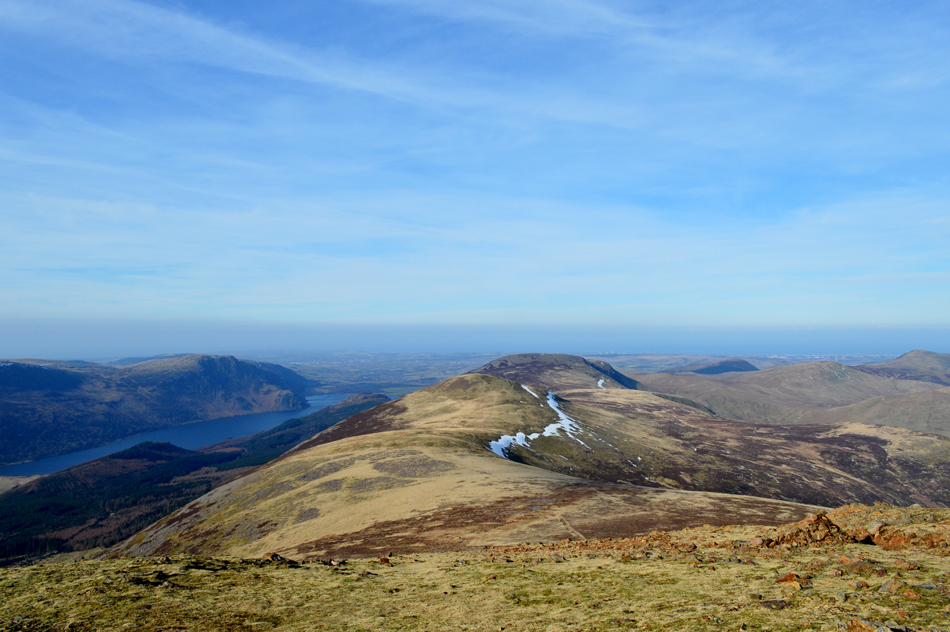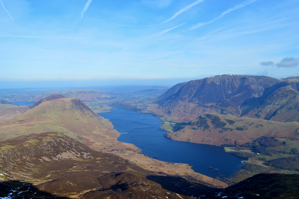 Odd for this time of year we could see a slight haze towards the west coast but at least it's clear overhead unlike the eastern fells which are still below cloud. Incidently that's Loweswater in the distance with Low Fell and Fellbarrow towards the right. |