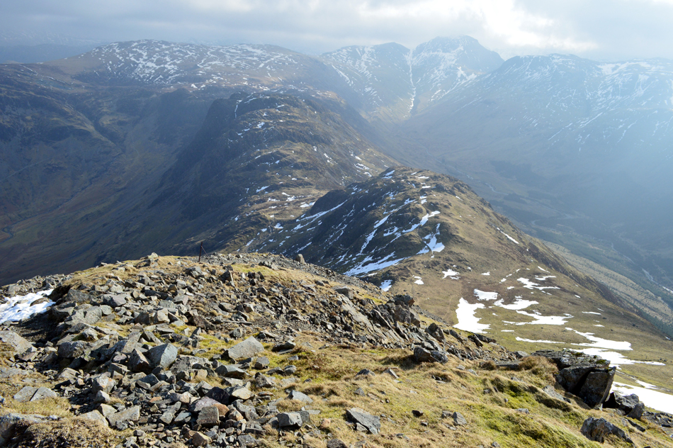 Those of you with a keen eye may be able to spot Eagle Crag in the foreground which Ian told me he'd climbed the east face many times back in his climbing days, those of you with a keener eye might be able to spot Sheep Bone Rake in the far left of Burtness Comb defined by a layer of snow from top to bottom. In the distance the Gables and Kirk Fell which are about to be lost in cloud. |