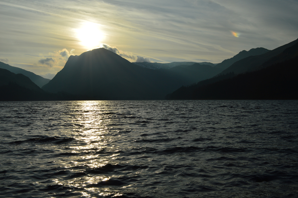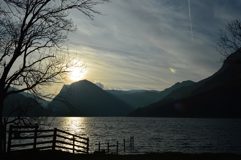 We left the Church behind before making our way through the village still catching up whilst at the same time silently taking in our surroundings. I still can't believe it had been so long since my last visit and if truth be known I'm sure we would have liked to have spent more time just soaking up the views, they sure deserved it. We arrived at the lake to find the sun rising in the southern sky which created a vivid profile on Fleetwith Pike, a scene I've seen many times in the February so much so I used to plan my walks at this time of year just to get this view. We wondered down to the shale beach and took a few moments to take in the view accompanied by the sound of Sourmilk Gill in the distance.
