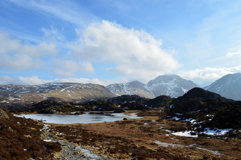 Brandreth, Green Gable, Great Gable and Kirk Fell as we approach Innominate Tarn. |