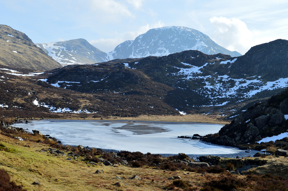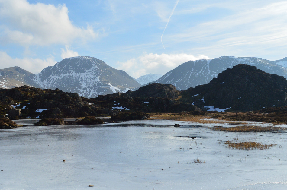 Green Gable, Great Gable and Kirk Fell from a frozen Innominate Tarn. |