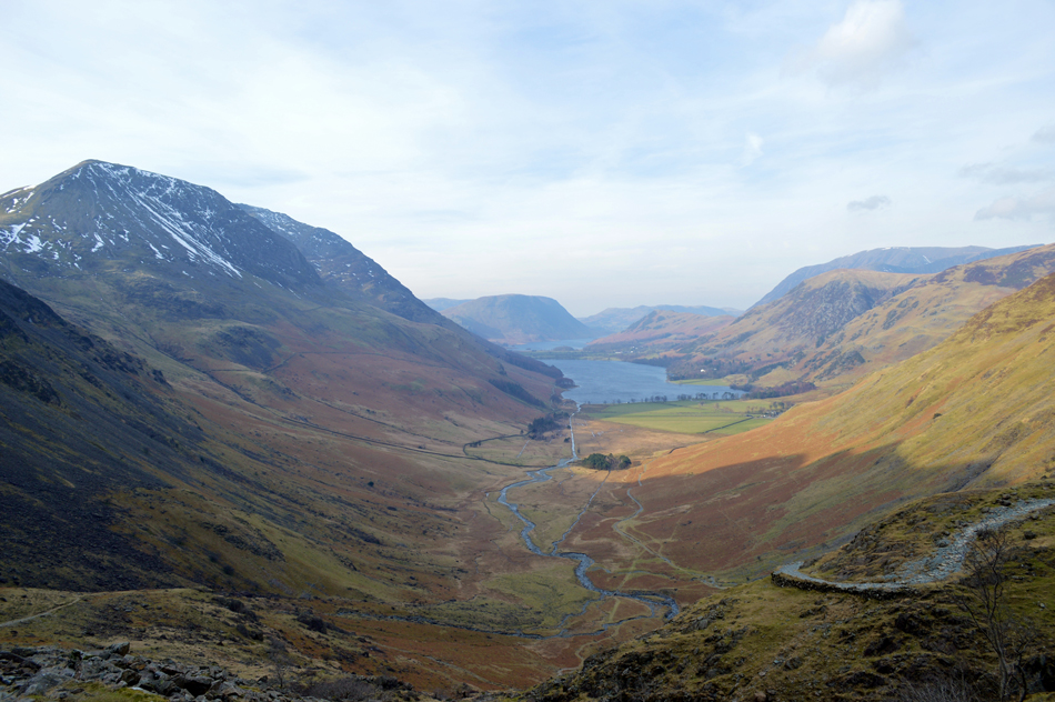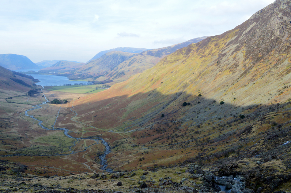 We've still a long way to go until we reach the car back at Buttermere! Talking of the opposite path you can make it out here seen lower right, it's one of the paths that lets your feet know what a tough day they've had! |