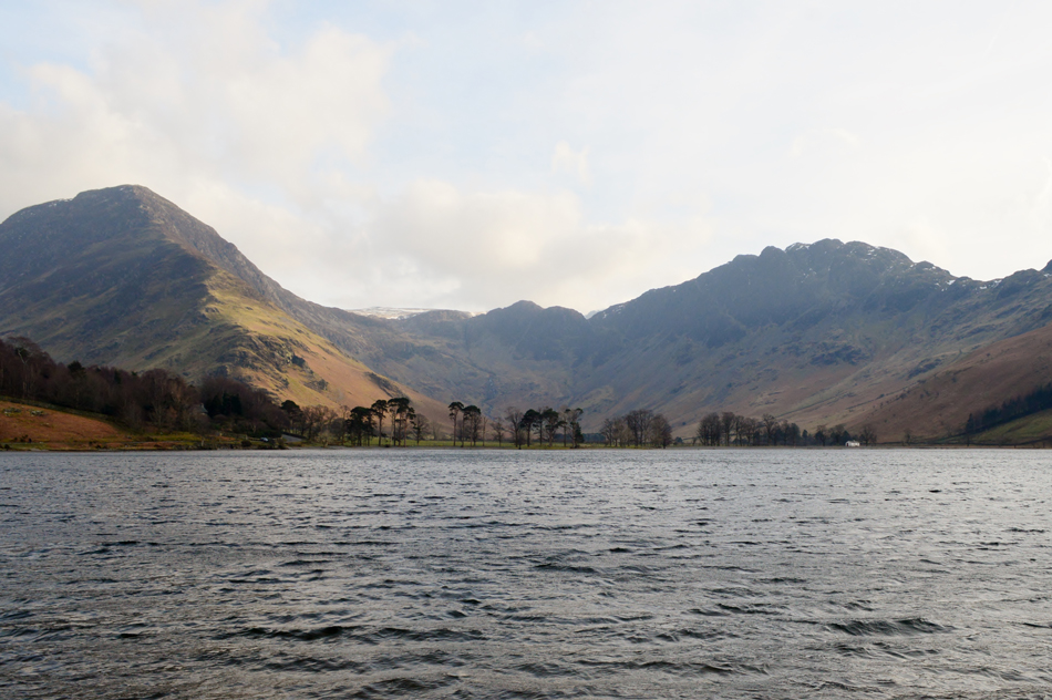 That's Ard Crags over on the left with Dale Head over on the right, you can see there's a light wind over the top of the lake which is starting to build with more height gained. |