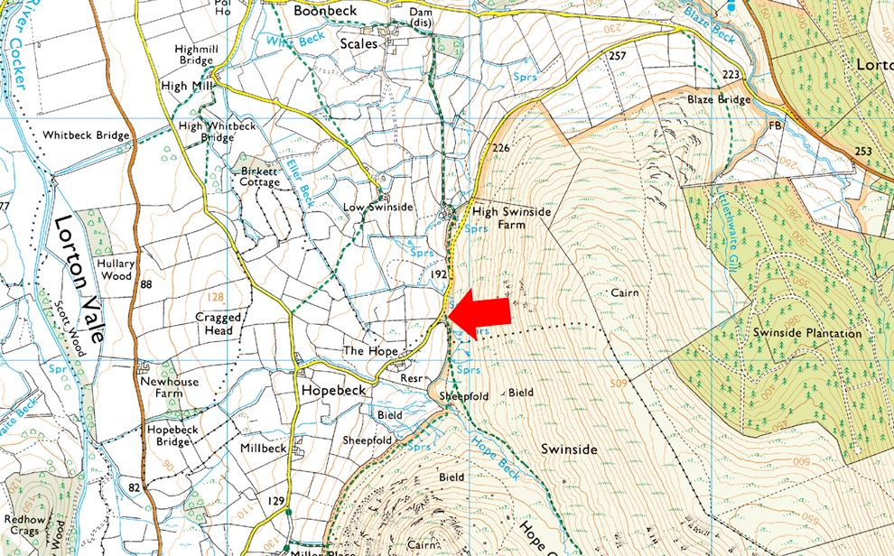 Found just past High Swinside Farm at Hopebeck there is room for up to four cars but be advised that the lane is narrow with the odd gate to open and close before reaching the parking spaces. Parking here gives excellent access to Hope Beck, Whiteside, Hopegill Head and Ladyside Pike. Parking is free. |