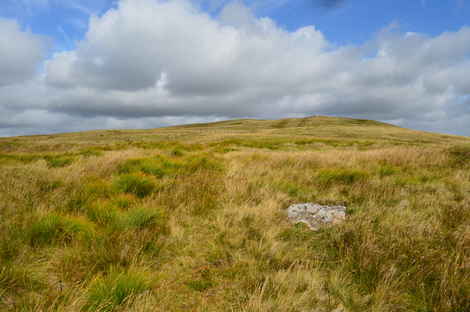 After crossing the stone wall I dropped into a more deep undergrowth, mainly bracken and long grass which was relatively easy to walk through. My tip here is to stay close to the wall for as long as possible, then jib left over the grassy plateau before reaching the summit cairn. |