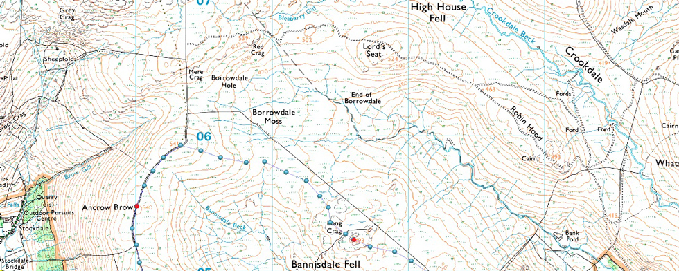 8, Whiteside Pike - Todd Fell - Capplebarrow - Ancrow Brow - Long Crag (Bannisdale) - White Howe - Borrowdale Head - Lamb Pasture |