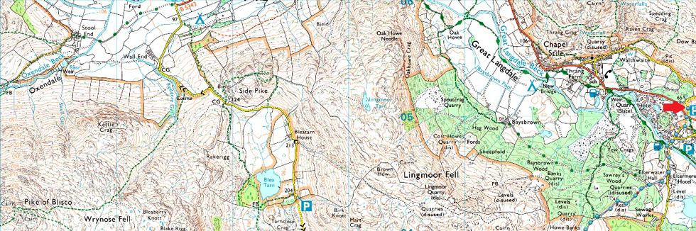 A small car park just outside the village of Elterwater Walthbottom provides access to the fells around Great Langdale, Little Langdale and of course Elterwater. Parking is free. |