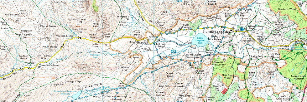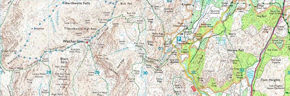 Elterwater - Elterwater Hall - Dale End - Little Langdale - Slater Bridge - Greenburn - Greenburn Reservoir - Broad Slack - Swirl Hawse - Wetherlam - Wetherlam Edge - Slater Bridge - Little Langdale - Dale End - Elterwater Hall - Elterwater |