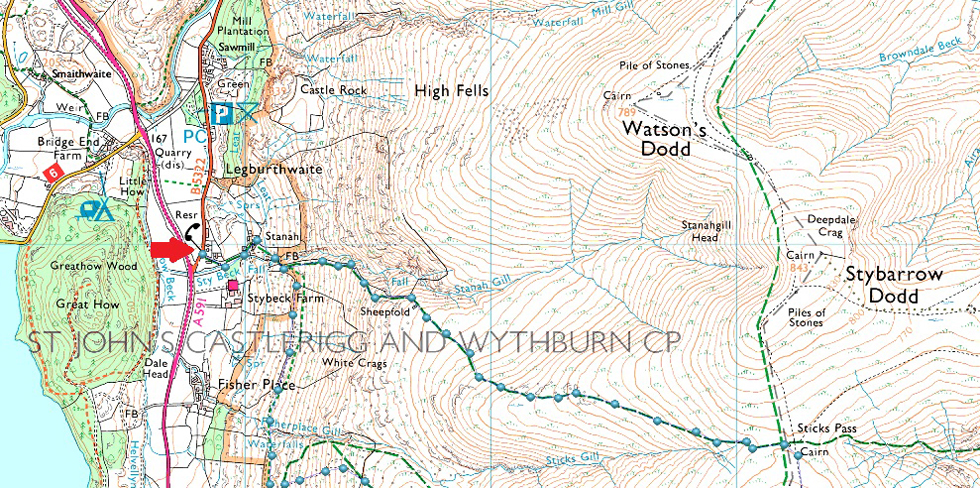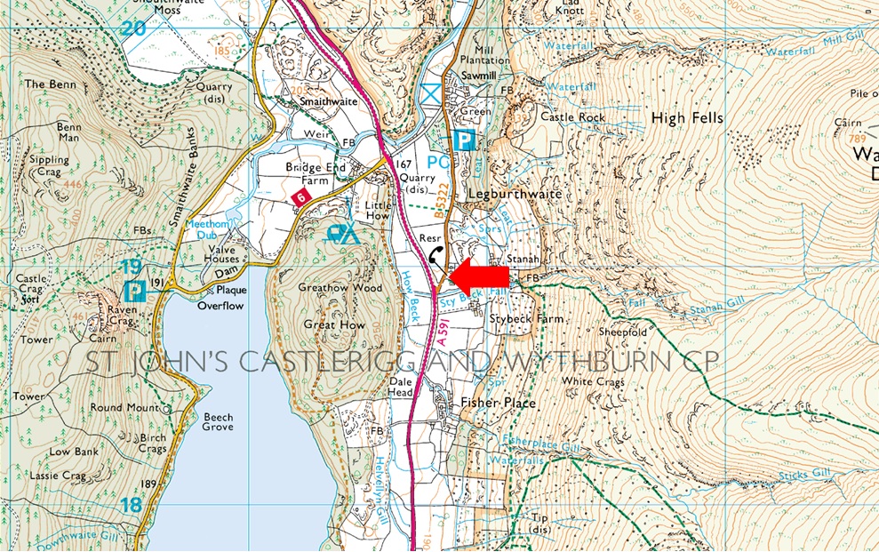 Found on the Thirlmere side of Sticks Pass the parking spaces at Stanah can be found just off the A591 at the junction with the B5322. Look out for the red phone box which is in front of the parking spaces. Sadly there is only room for around four cars meaning parking is at a premium, my advise is to arrive early to be sure of a space. |
