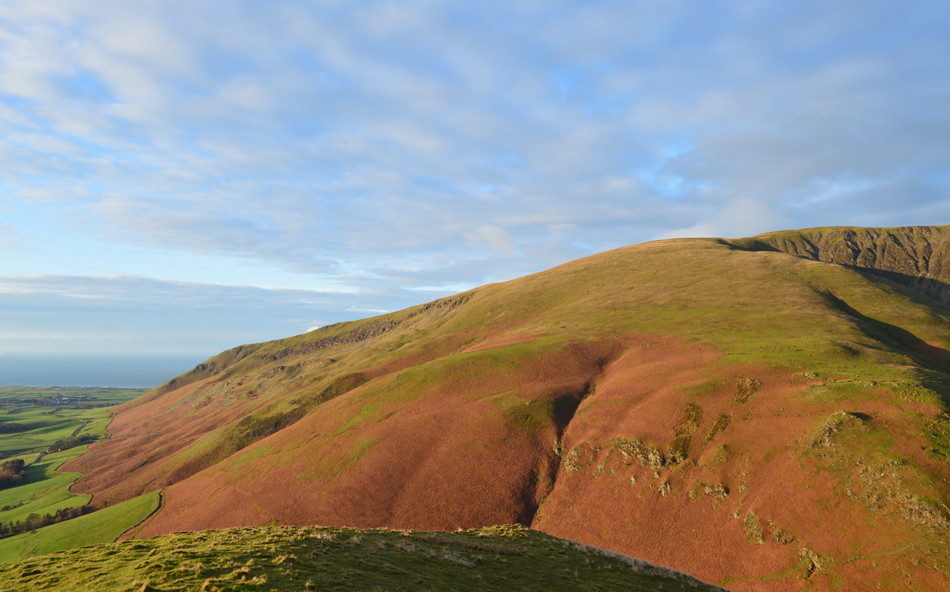 Looking back on Birkside as first light illuminates the bracken covered slopes of Black Combe. |