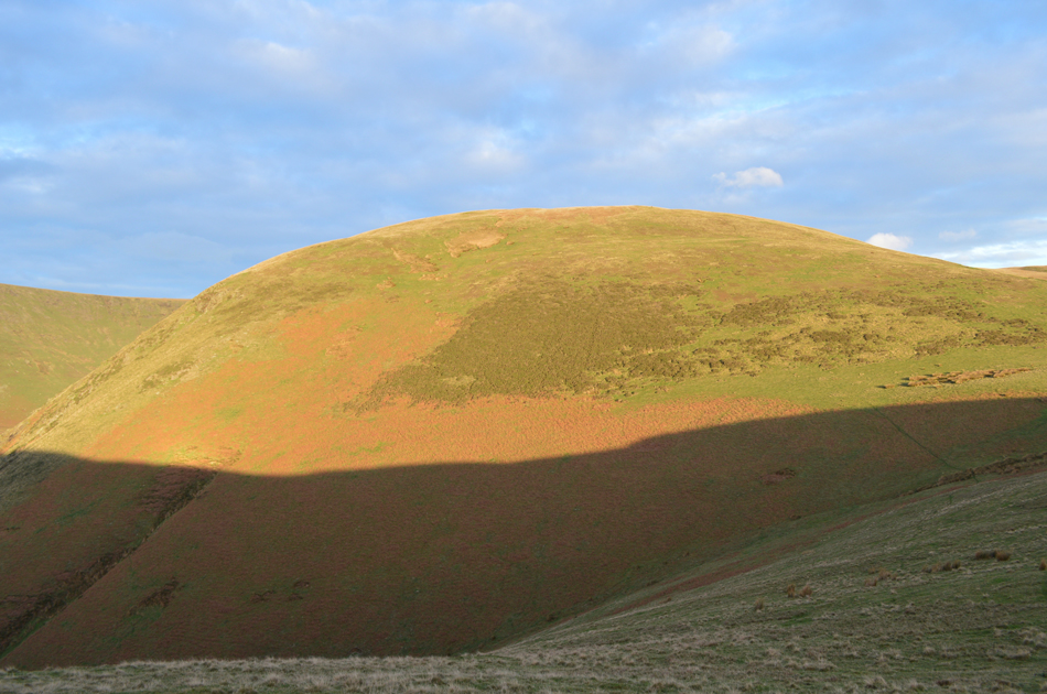 Kinmont Buck Barrow, Buck Barrow and Whitfell from Stoupdale Head. |