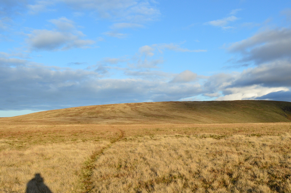Having crossed the col I began the steady ascent on White Combe by following a singular grassy trod, with only one false summit on the horizon White Combe's summit shelter first came into view followed by the summit cairn off to the right.