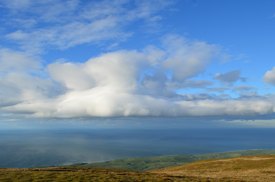 An unbroken view of the Cumbrian Coast seen as I approach the last few yards towards Black Combe summit. |