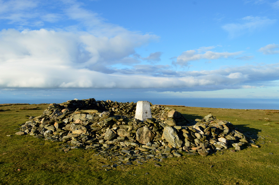 By the time I arrived at Black Combe summit the wind was starting to whip up leaving my fingers to cope with the sudden drop in temperature, there was no fighting the niggling pain the windchill was causing so just prior to reaching the summit shelter I de shouldered and dropped to one knee and took out my gloves before easing them over my now raw hands.
