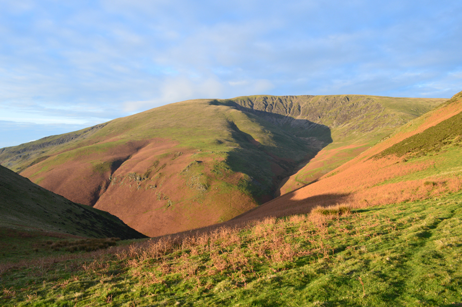 Looking over Whitecombe Screes and Stoupdale Head from Hentoe Hill. |