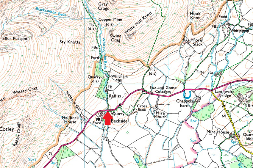 The parking spaces can be found on the left if travelling towards Whicham at Birkside Farm opposite the entrance to the old Whicham Mill (now Swallowbarn Holiday Cottages) There is room for upto six well parked cars. Parking is free. |