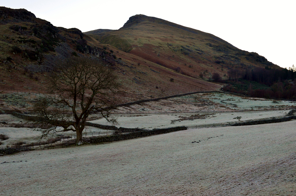 One car and a camper van had already parked up on the layby and as we kitted up another car arrived with what appeared to be a gent and his granddaughter who smiled over the roof of the car infront. It's calm but there's a hard frost underfoot and we each kit up accordingly adding thick Winter gloves not forgetting to pack spikes and crampons should we encounter any ice - non of which had been present over the last few days but owing to last nights freezing temperatures it just isn't worth taking the risk, my Ice axe however, was left in the boot of my car back at Wythburn. |