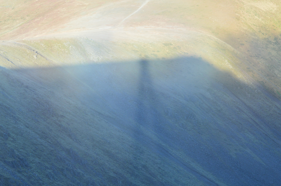 Despite Rod being a familiar figure on the fells he's never experienced a broken spectre, that was until right now when a thin layer of cloud passed over Brown Cove catching the sunlight just at the right angle as it went by, It caught my eye first then Rod saw it and grabbed his camera, the pair of us were lucky enough to capture the event taking several shots each. |