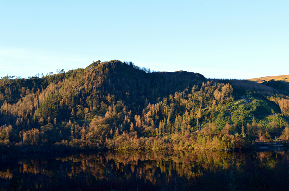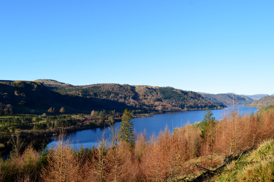 High Tove seen over Thirlmere from the foresty track below Birk Side. |