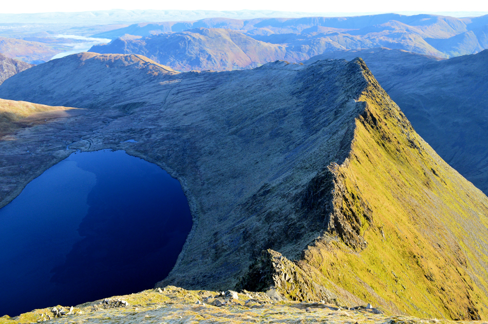 Looking down on Swirral Edge, Catstye Cam, Red Tarn and Birkhouse Moor. |