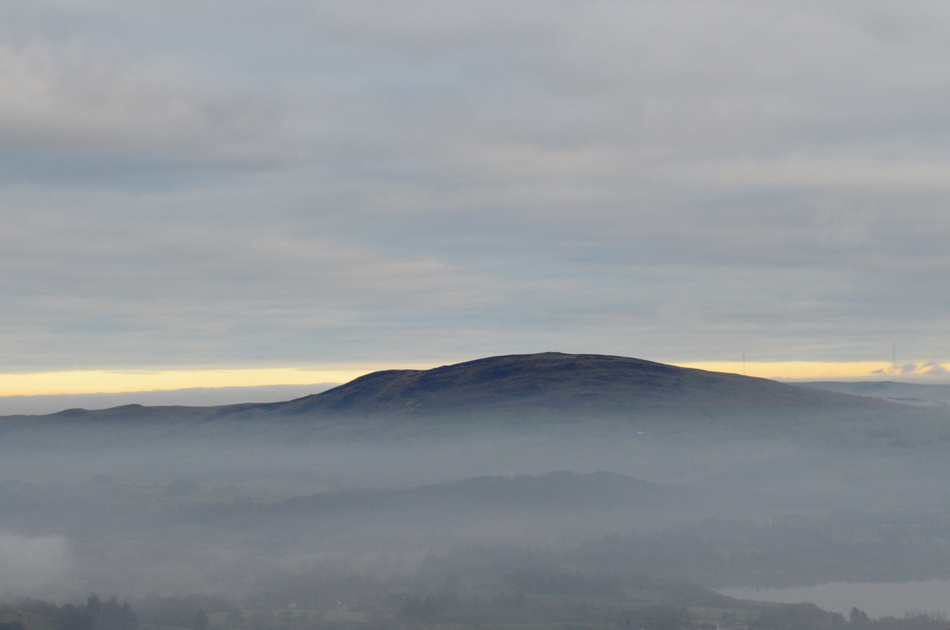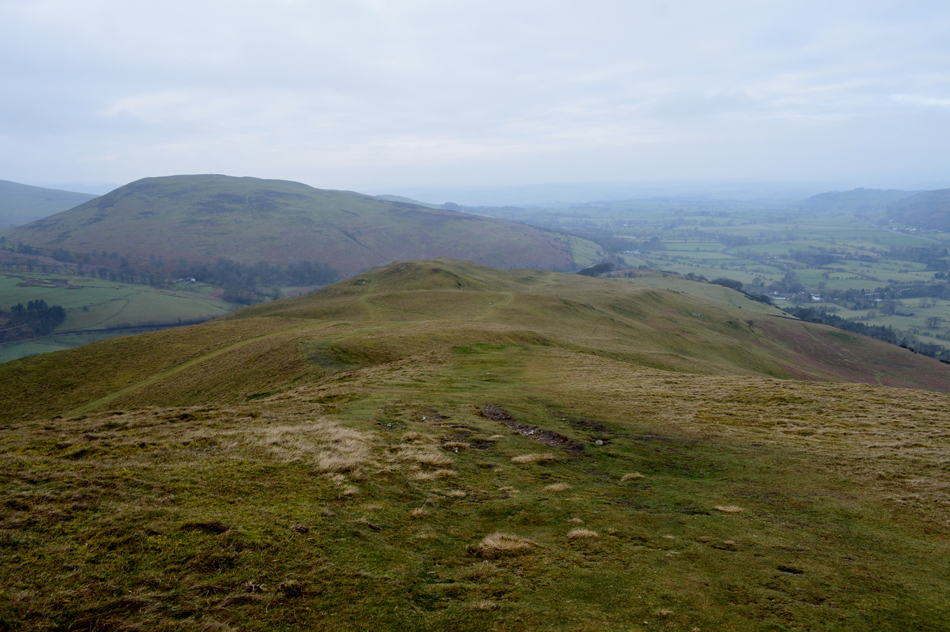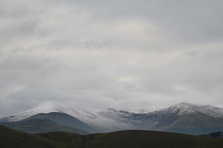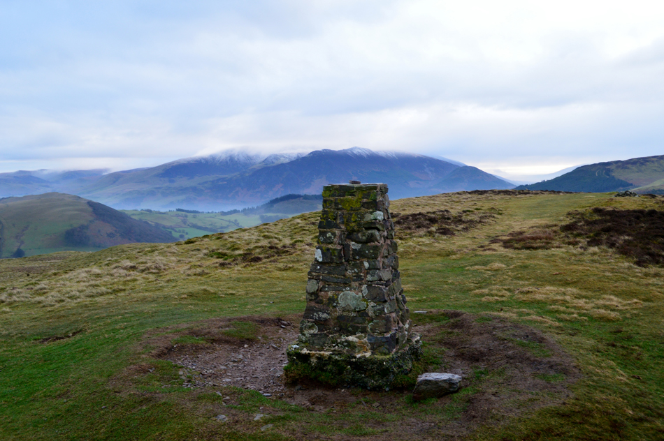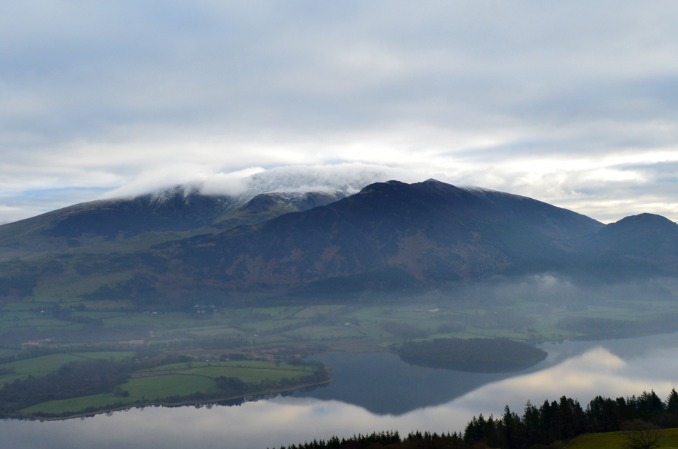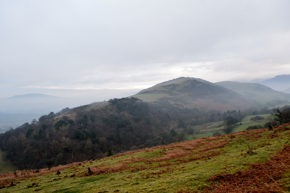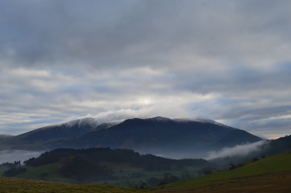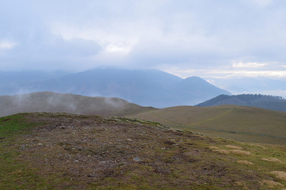 Dawn had just broke but the light was still very low and moody, it had started to rain lightly as we crossed Brumstone Bridge and it didn't stop until we were below Ling summit. In the distance between a tangle of cloud Criffle could be seen while closer to home, Binsey's summit poked out above the valley mist. We descended easterly from LIng Fell and picked up the track which lead us along the outskirts of Wythop Moss which was nothing more than a tad wet underfoot. We gained Burthwaite Heights easily and feasted upon the Lord's Seat fells and a snow capped,cloud topped Skiddaw which still looked inviting. We descended north easterly and passed through the hamlet of Old Scales before passing through the fields sign posted Chapel Wood. Dead ahead Sale Fell below Chapel Wood and further right, our next summits of Lothwaite and Rivings, not before taking the half mile through Chapel Wood before a steady ascent which brought us out between our next two summits.