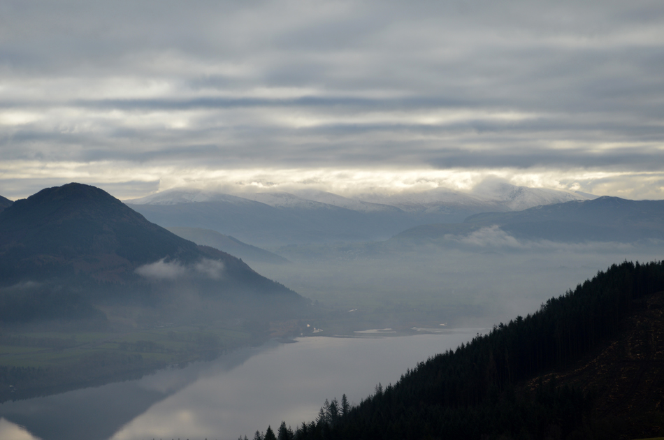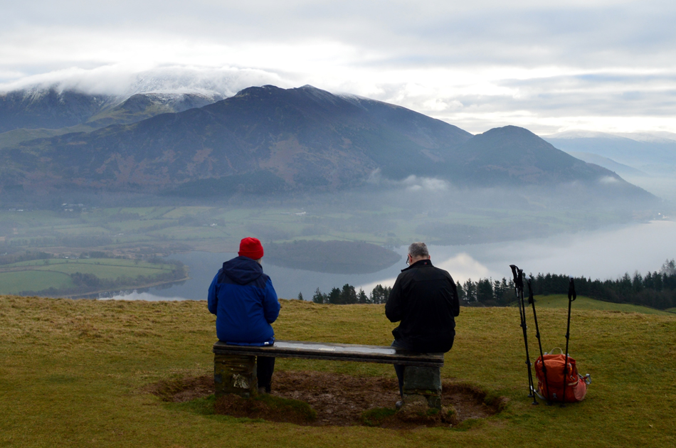 Lothwaite was recommended as an "out an back" so we went there first and upon reaching the summit Jennifer took her seat at 'Jennifers seat' a bench with a view over Bassenthwaite to die for. We back tracked after snacks and made our way to Rivings encountering fast approaching cloud from the north and by the time Rivings was reached the cloud had started to scatter revealing Sale Fell up ahead. We left Rivings passing a couple with a dog and smiles were exchanged. Earlier Sale had looked packed but with numbers having just left we found the summit to ourselves. Between breaks of cloud we descended the summit making for Dodd Crag where care had to be taken due to mud underfoot, with views of Ling and Burthwaite we dropped onto the path below sighting our cars through the trees at Brumstone Bridge which by now, was much more busier than we had left it earlier. |