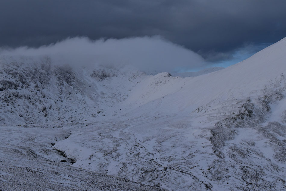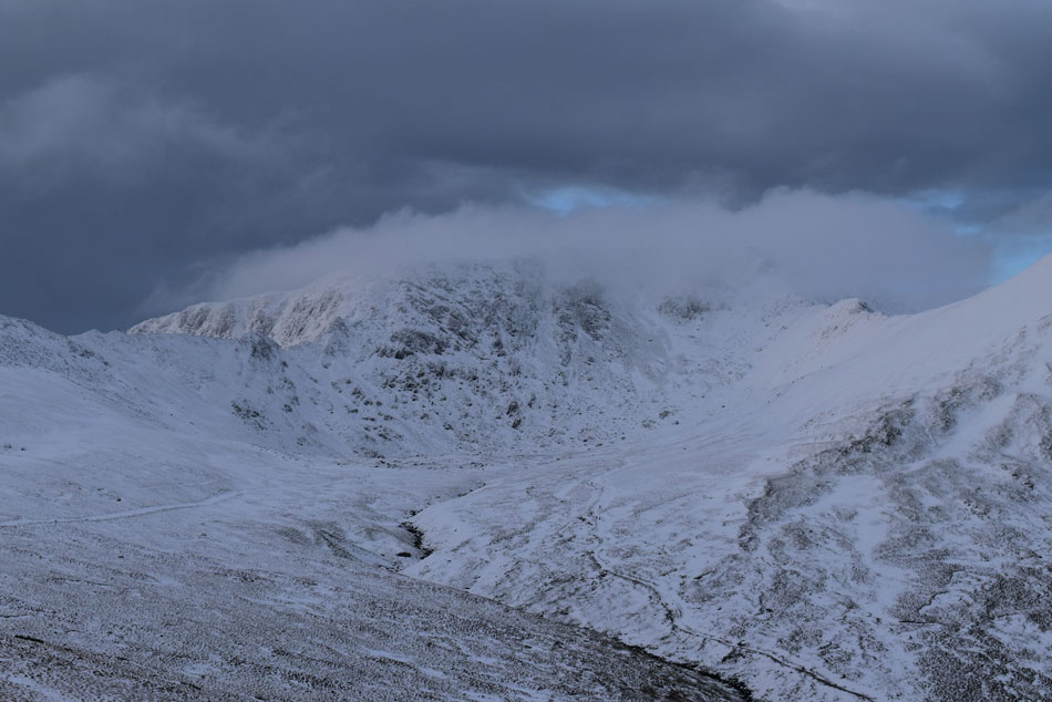 It appears the cloud has lifted over the Grisedale valley but more is on its way for Helvellyn. |