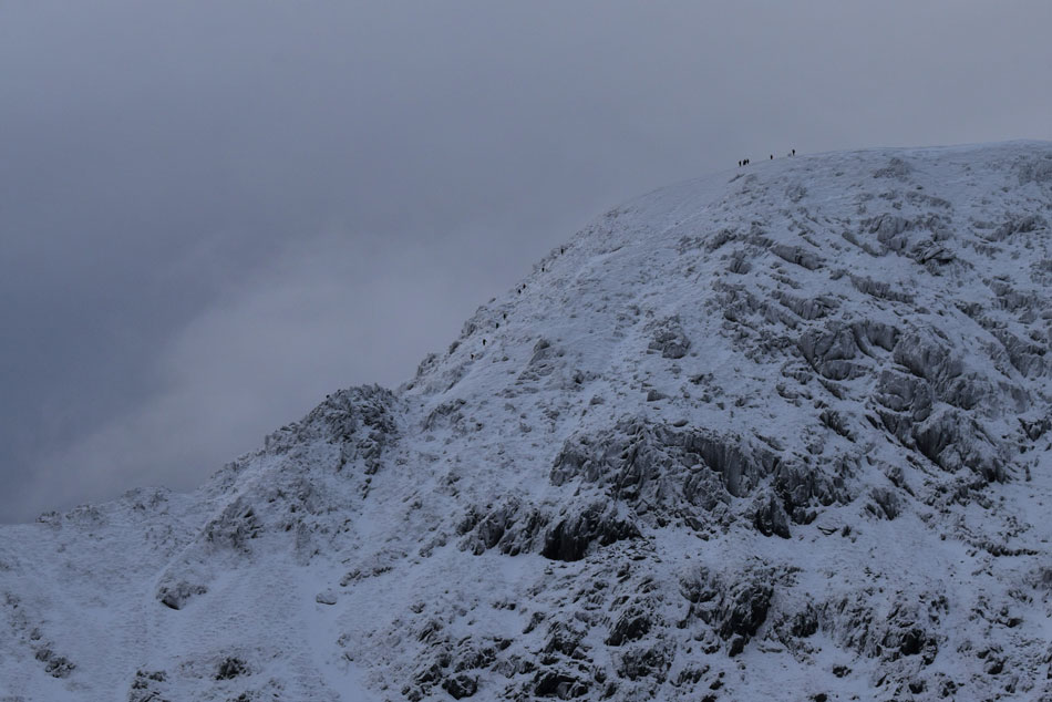 It was a tad worrying how many were still heading up towards Red Tarn with only three hours of sunlight left, more worrying was that most who passed me appeared to be day trippers and not walkers kitted out in full Winter gear, I hoped that it was just Red Tarn they were heading for. The lower I descended the milder it became and soon I was de-layering, off came my beanie, gloves and buff which I double looped over my right wrist.