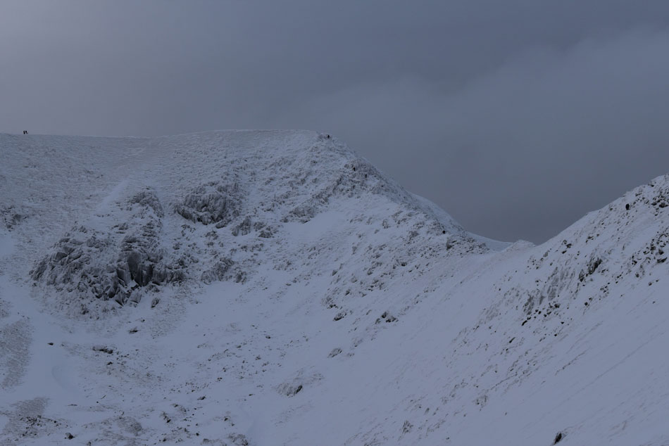 With the base of the north east ridge seen far right, the two walkers I had seen earlier are sitting at the top of the ridge just taking in the views. |