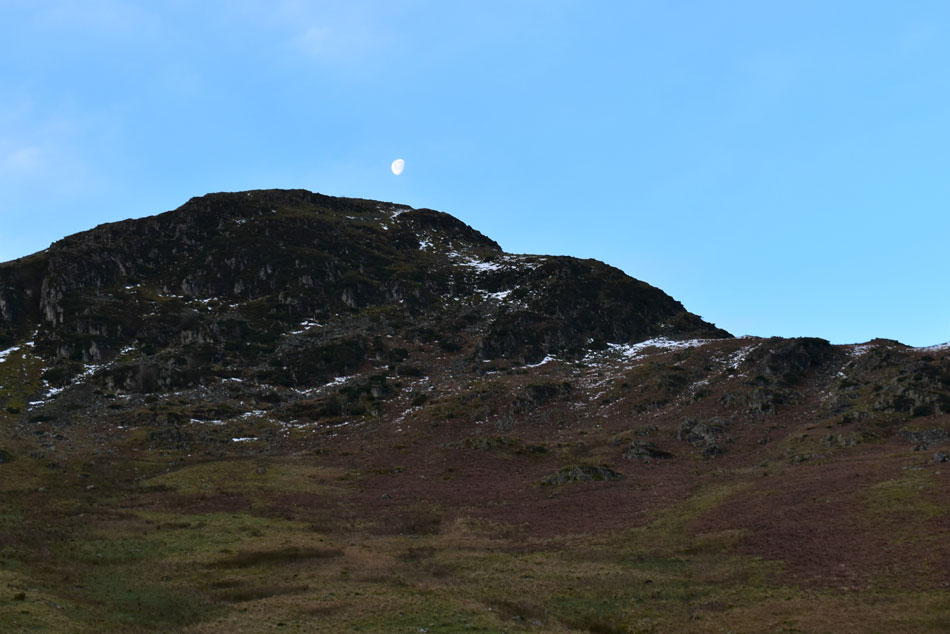Moon over The Nab on Birkhouse Moor North East ridge -1°C 08:55am |