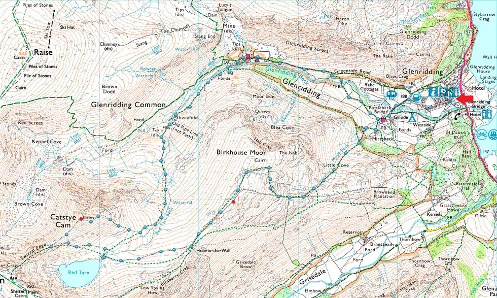 Glenridding - Rattlebeck Bridge - Mires Beck - Birkhouse Moor - Red Tarn - Catstye Cam - Red Tarn Beck - Greenside Road - Glenriddinging |