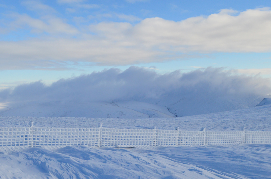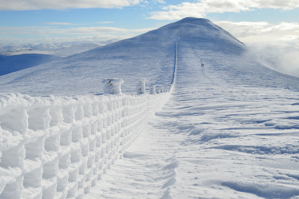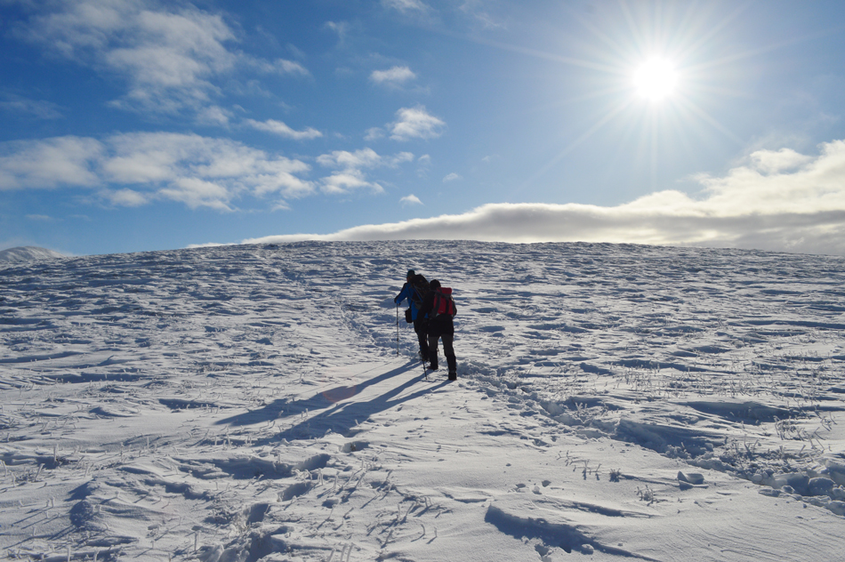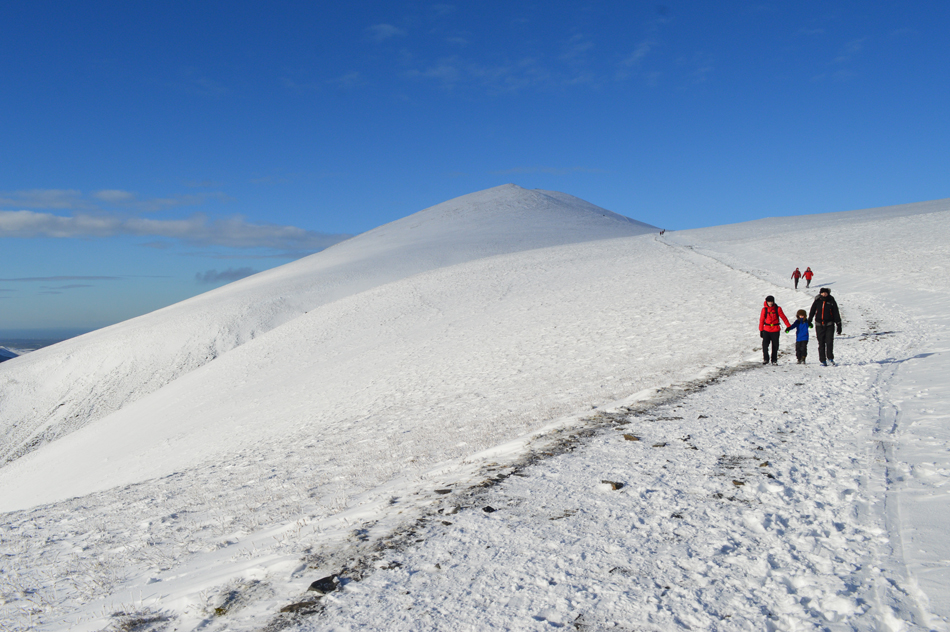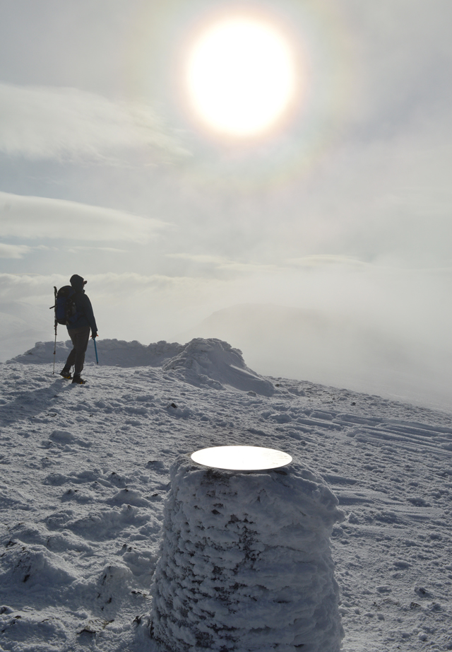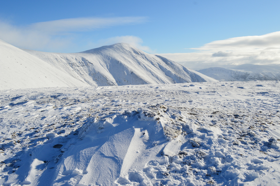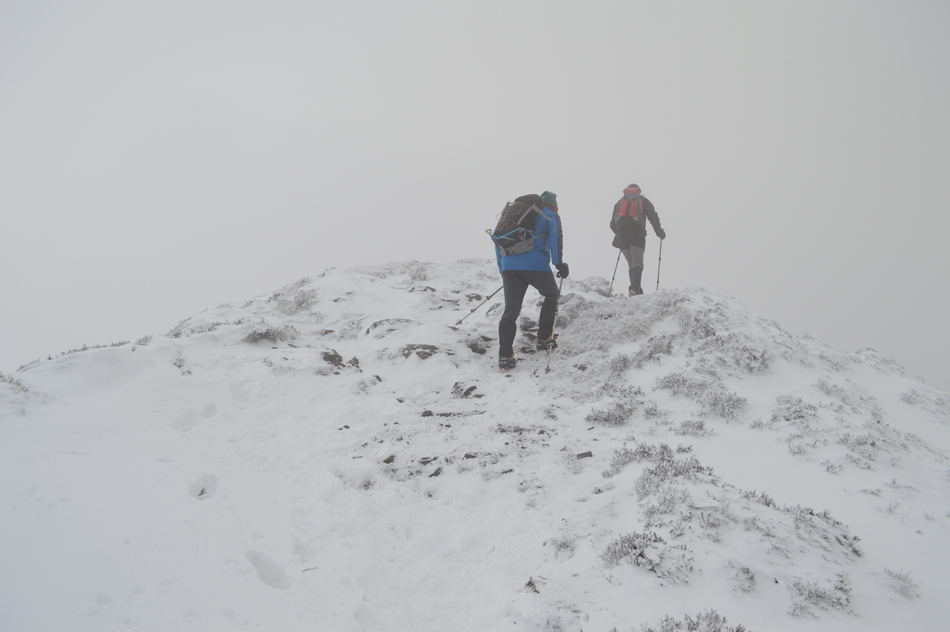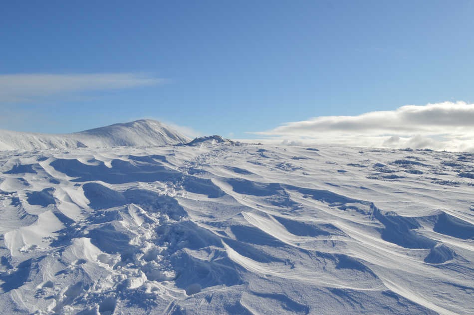 Lesser Man was soon reached as the brutality of the windchill continued, it was here we were joined by more walkers most of whom were ill-equipped carrying the likes of small pug dogs (we counted three in total) which whimpered in the severe cold, most owners had the sense to realise that they were in to deep and turned back while others had a discreet advisory. |