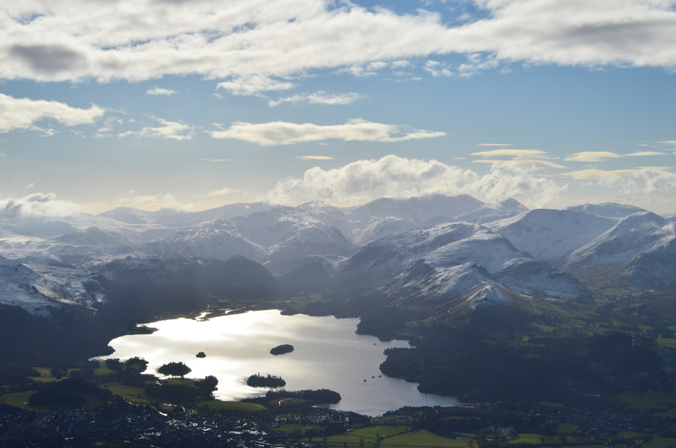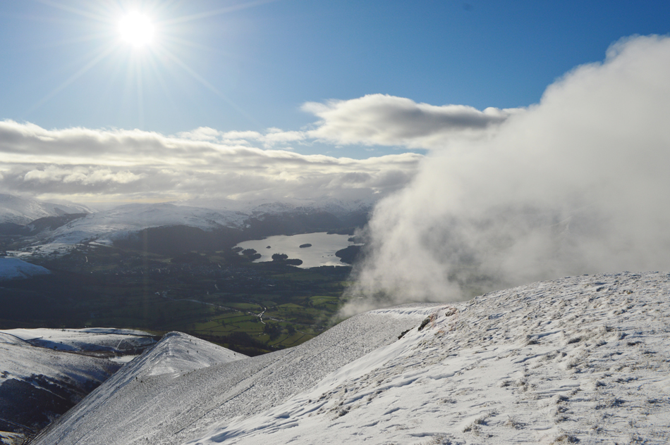 With hats and gloves packed away we pass the Hawell Monument where we stopped to admire Lakeland in its full Winter glory whilst in the distance the sound of childrens screams as they sledge down the slopes of Latrigg accompany our walk back to Underscar. |