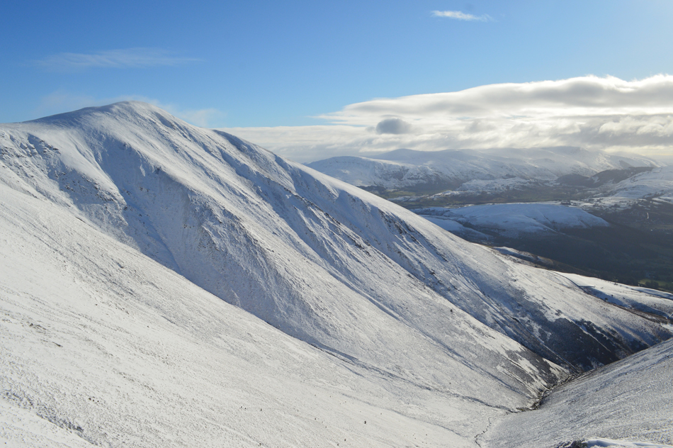With Clough Head, the Dodds and the Helvellyn range appearing far right. |