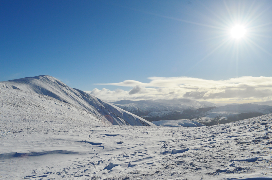 A snow capped Criffle is clearly seen over the Solway Firth, so clear we could actualy see the stone walls on Criffle's lower slopes. |