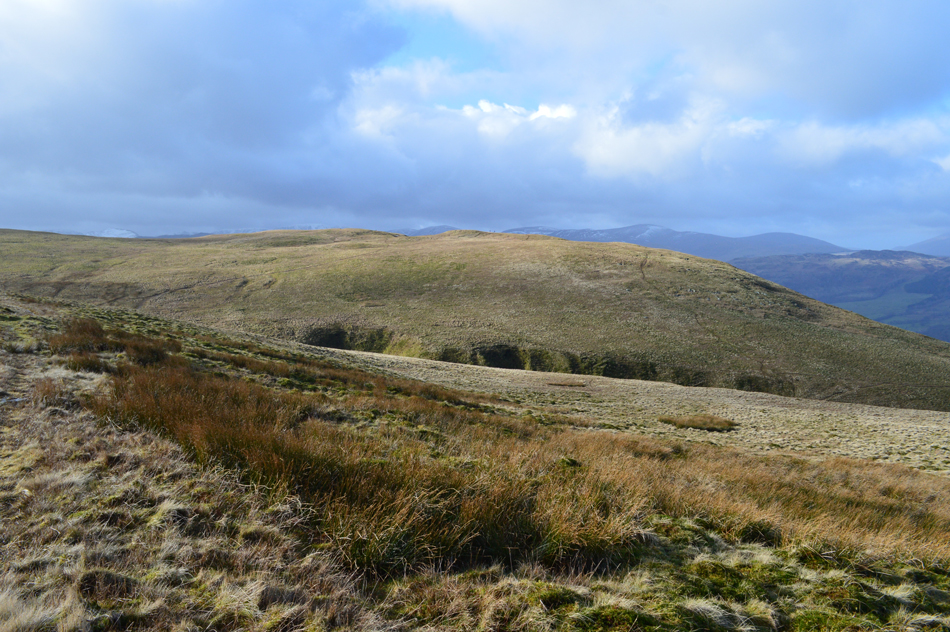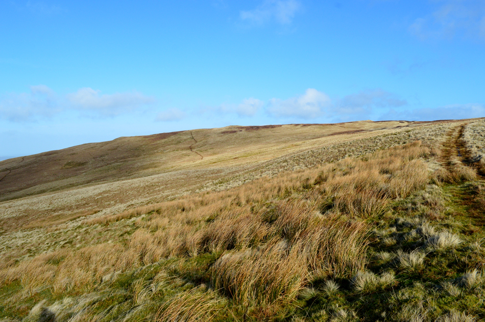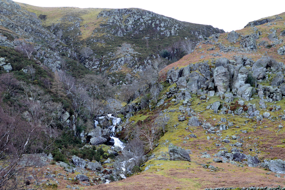 The path continued towards Mellgaurds and from it we started to see the steep zigzags higher up the hillside, locating the lower half of the path however, can be tricky especially during the Summer months when the Bracken is rife, today we were lucky and located the path easily as I make a mental note of its location situated directly opposite a concrete manhole in the path, this may seem rather over the top while in the depths of Winter but come Summer when the Bracken is high that concrete grid will come in handy. |