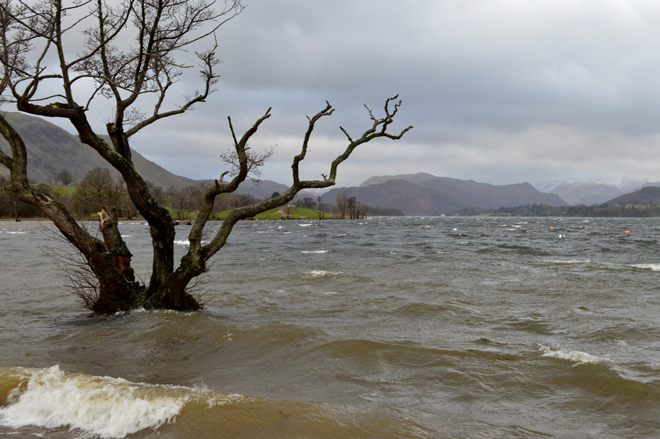 White horses whipped up by Storm Erik on Ullswater. |