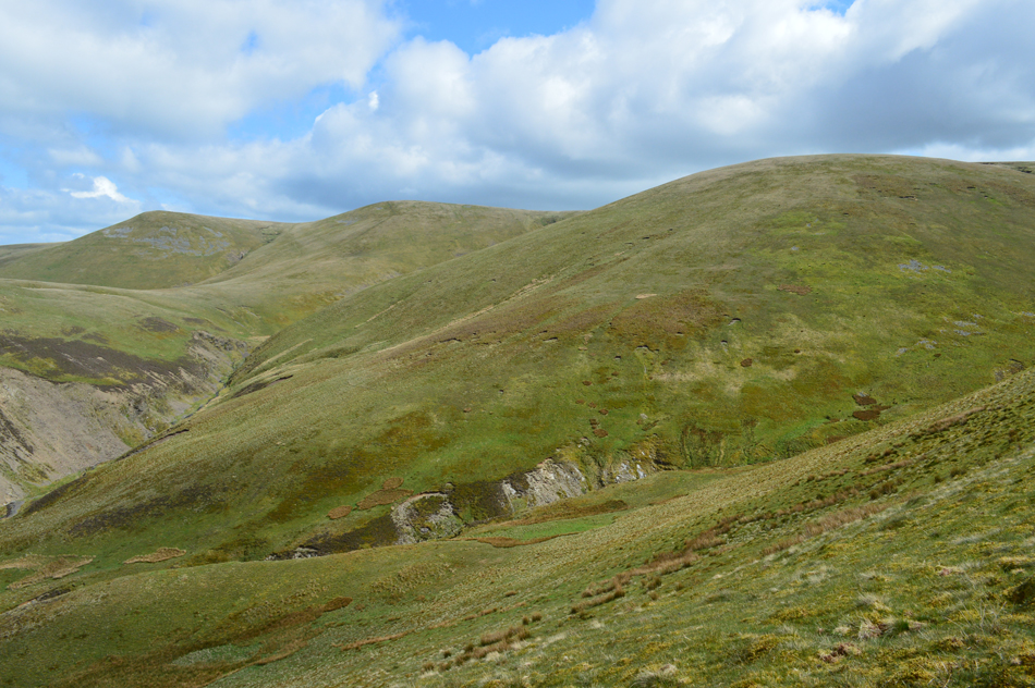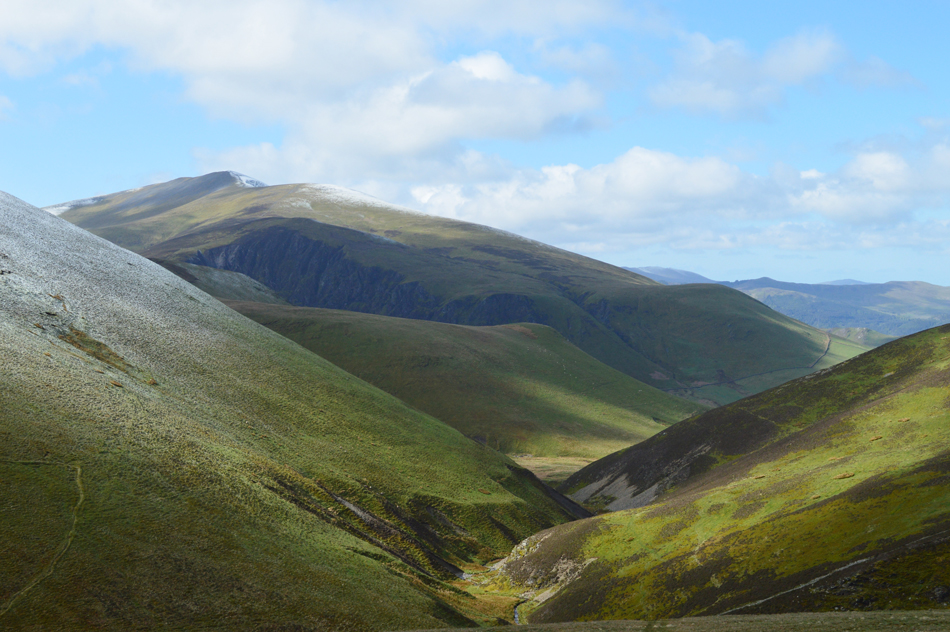 The going gets slightly easier as we ascend Little, then Great Sca Fell's after which it's the turn of Knott. From the summit of Knott we trace easterly over pathless ground and gain Frozen Fell which can feel a million miles from anywhere. Lastly we track a pathless route and gain Burn Tod from where we descend northwards via a series of zigzags and cross Burntod Gill with a clear through view Trusmadoor before following the course of Burntod Gill into the delights of the Dash Valley before returning to Peter House Farm under a warming mid afternoon sun. |
