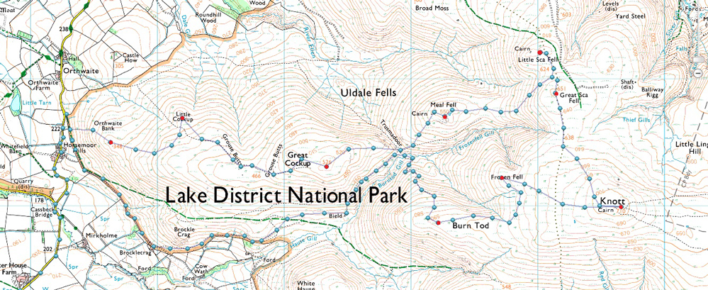This is the second installment that Birkett gave to the Uldale fells the first of which we completed on a wet and windy day back in December last year. Today promises to be much drier which can only add to the experience of walking these remote hill tops. Todays first summit is that of Orthwaite Bank perched above the hamlet of Orthwaite followed by Little and Great Cockup before we descend into the fabulous micro valley of Trusmadoor from which we start the steep ascent on Meal Fell from.