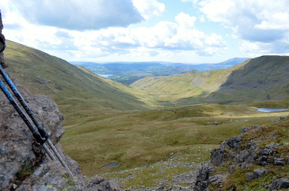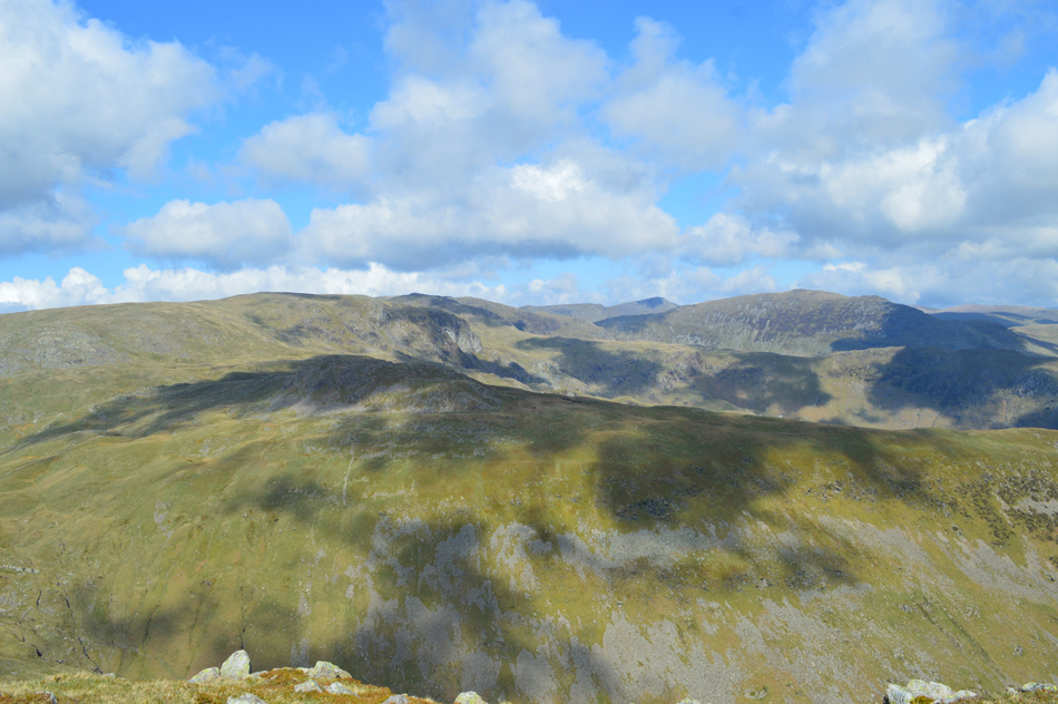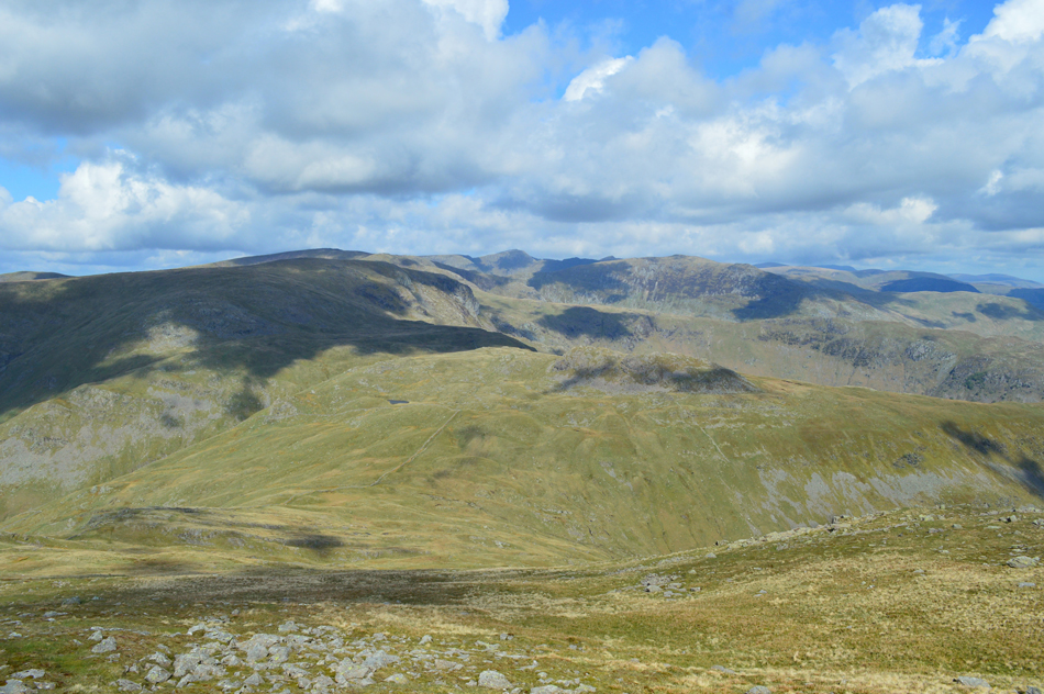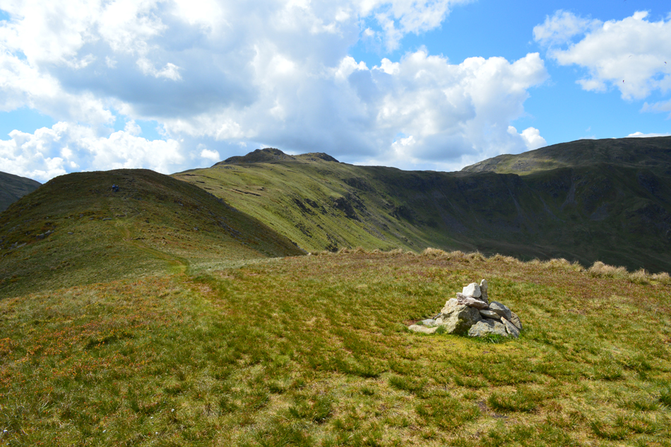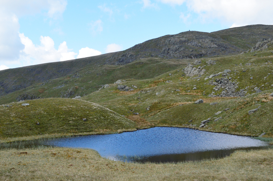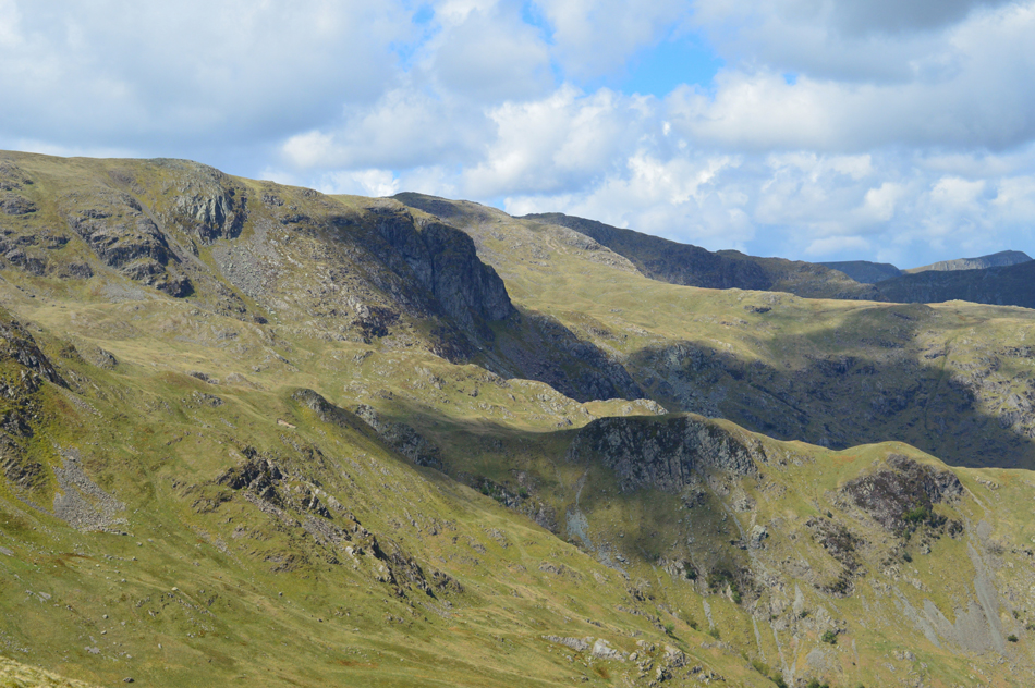 I feared leg burn after spending five of the last seven days on the hill but my legs reacted well as did the lungs. With the shoulder reached layers were re-added due to the cool summit winds whose temperatures either plummeted or rose depending if the sun was hidden, or free from cloud. Next we ascend steadily towards Red Screes via Smallthwaite Band and reached the summit under clear, but chilly skies. After a walk around Red Screes Tarn we descended passing the top of Scandale Pass then made the short ascent onto Little Hart Crag where we broke for lunch.